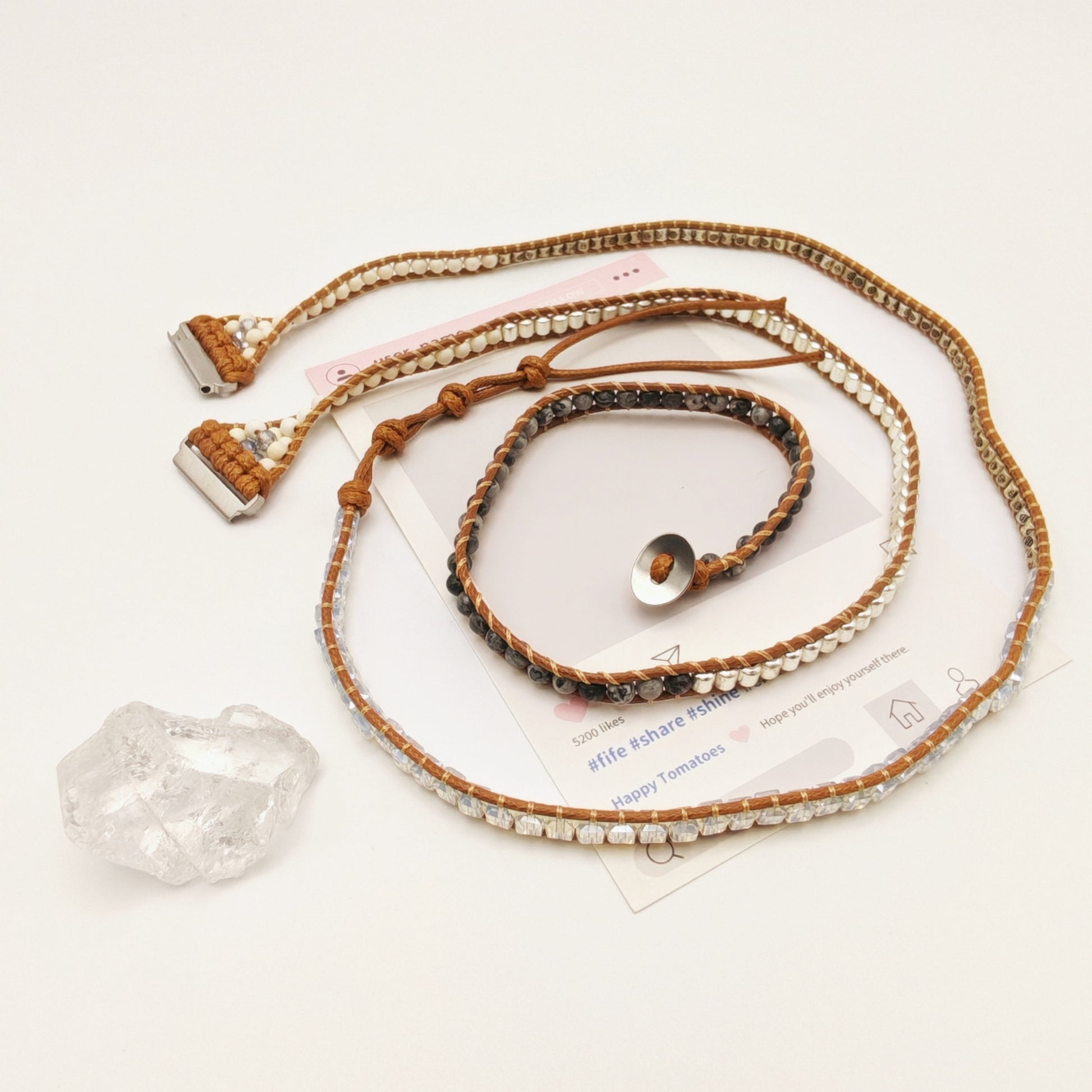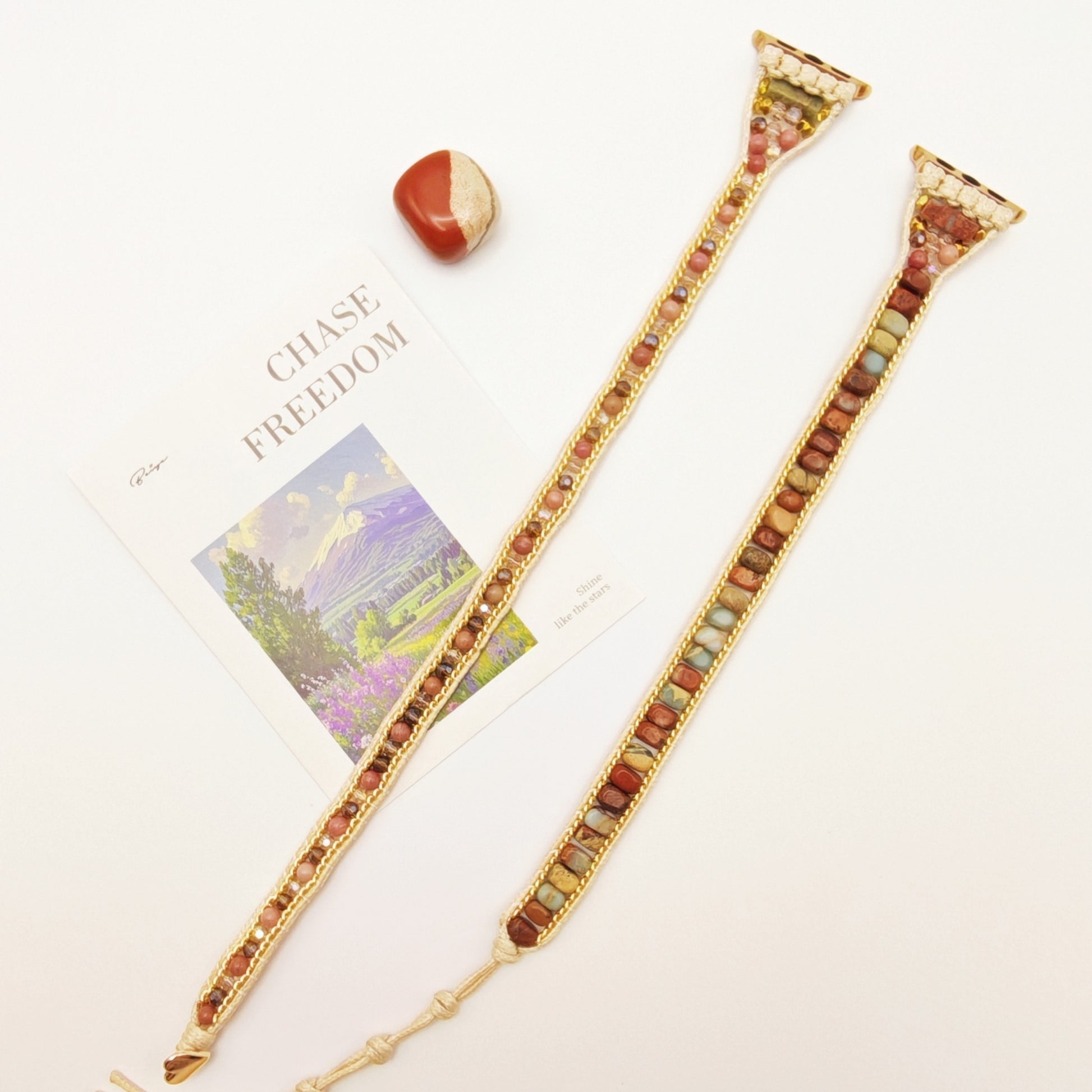 We believe that what you wear should do more than just look good—it should make you feel good. Our mission is to infuse your daily life with positive energy through mindfully crafted watch bands. Each piece is a unique work of art, made with natural stones to help you stay grounded, inspired, and focused on your path. Let your watch be more than a device; let it be a touchstone for your spirit. Be the energy you want to attract.
